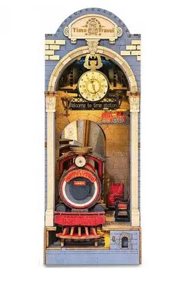 Robotime-Rolife Time travel Book Nook TGB04 3D wooden DIY miniature dollhouse kit is a train station that can take you to a different time and space. We have provided you with all the pieces and tools for you to create this cool miniature station scene. Have fun assembling all the parts together, and you'll get a unique book nook shelf insert and home decor! Hurry up, the train is about to leave!